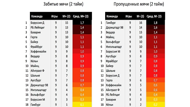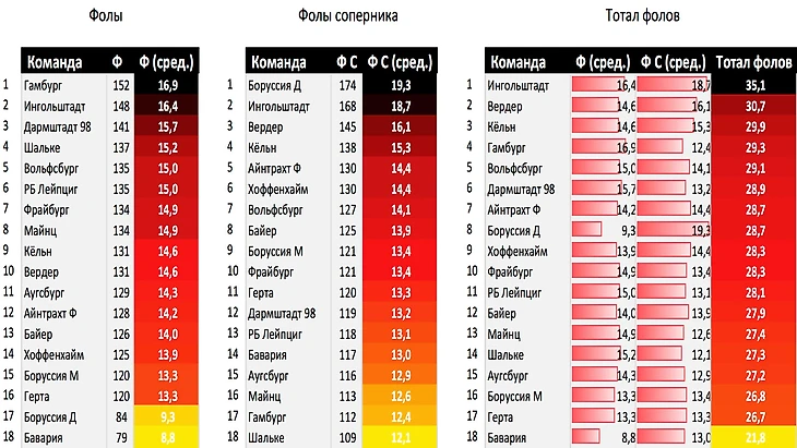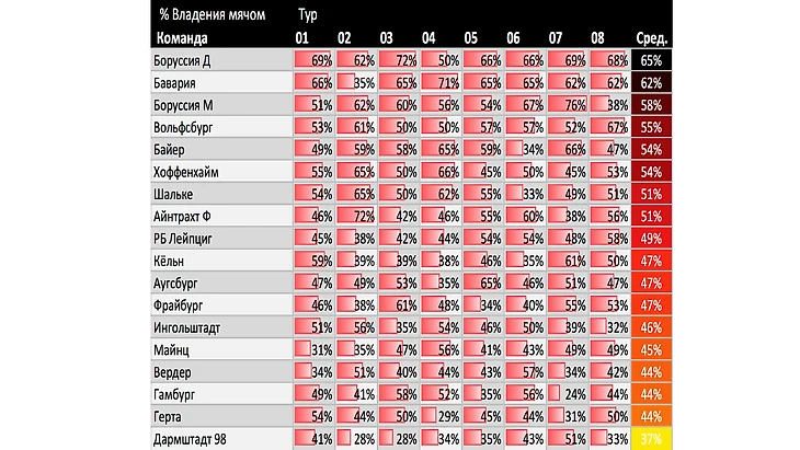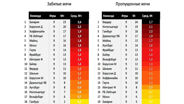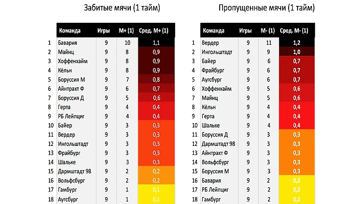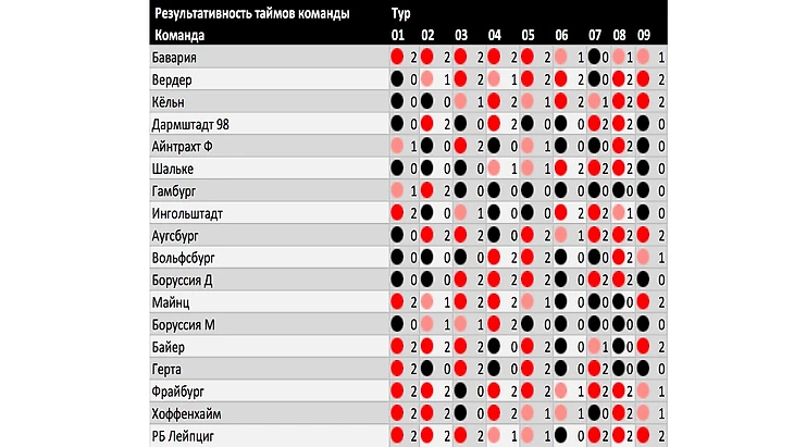 Оцифровка №28. Статистика команд Немецкой Бундеслиги перед 10 туром