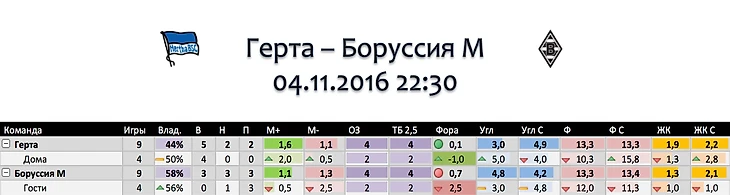 Исходя, из средней форы команд, результата Герты в домашних матчах, я бы поставил на победу Герты. Это мнение усиливается тем, что Боруссия М совсем не в лучшем виде. А если вспомнить, что команды играют не очень результативно, то можно взять ставку ТМ 2,5. Или даже комбинацию П1+ТМ 2,5.