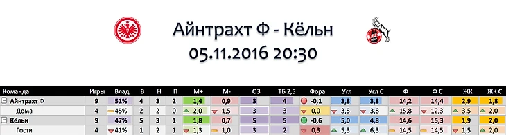 Я бы взял 1Х или Х2. Мне кажется, что эта игра закончится в ничью. Но если обратить внимание на статистику, Айнтрахту в последних 3 играх забили дома. Уверен, что это игра на обе збьют, потому что Кёльн это делает на постоянной основе.