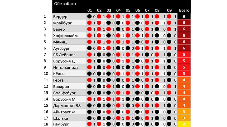Сегодня стартует 10 тур немецкой Бундеслиги. Мы уже прошли 3 выпуска и посмотрели, как хорошо периодически заходит Германия, если ориентироваться на цифры. Мы уже так же поговорили о форах и ставках на "обе забьют". Последнее, к слову, рассматривали перед прошлым туром. Так вышло, что прошлый тур стал самым минимальным из всего чемпионата по данной ставке.