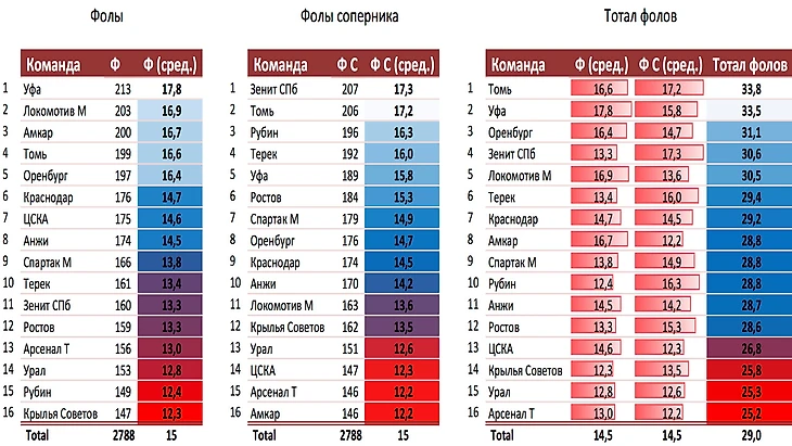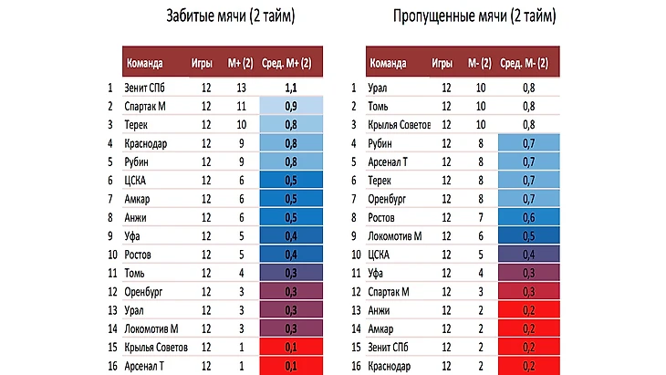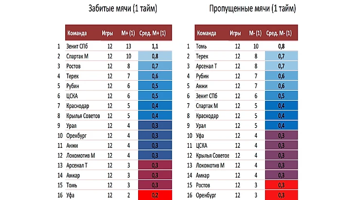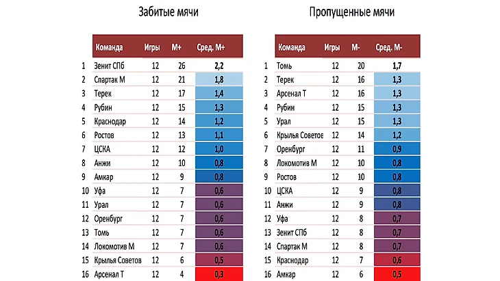 Оцифровка №29. Статистика команд Российской Премьер-Лиги по футболу перед 13 туром