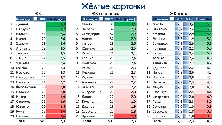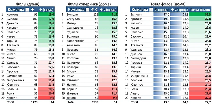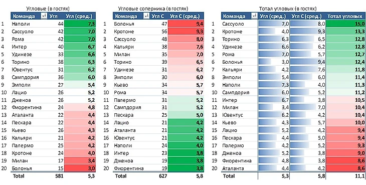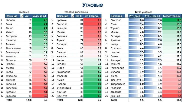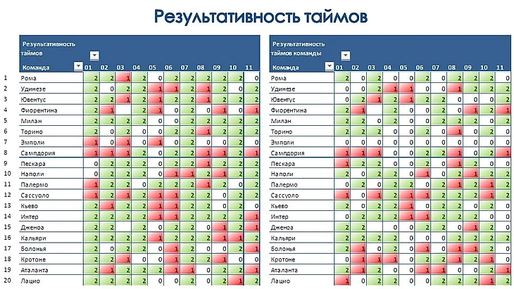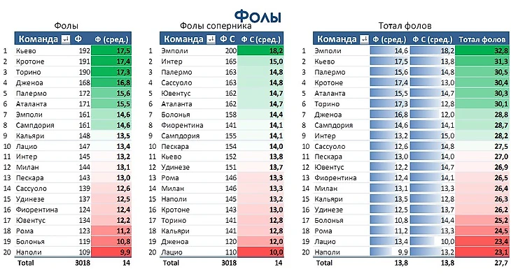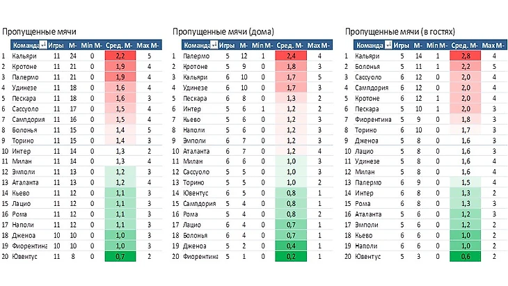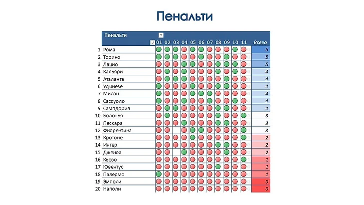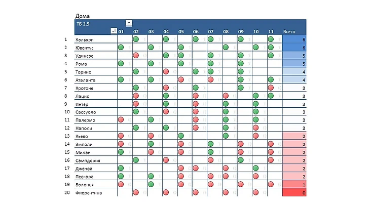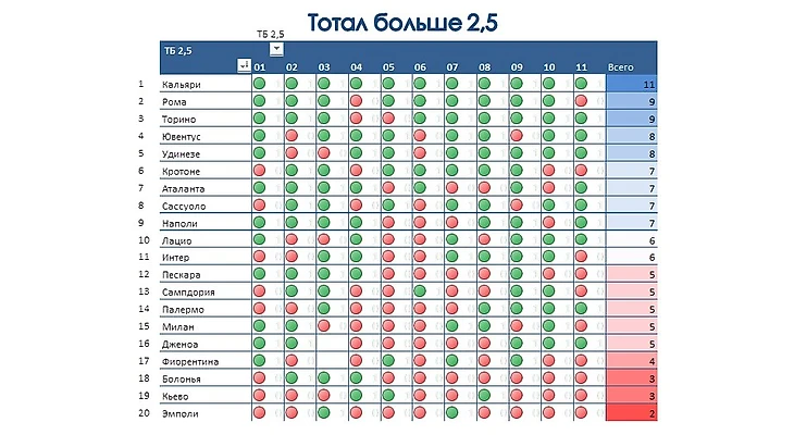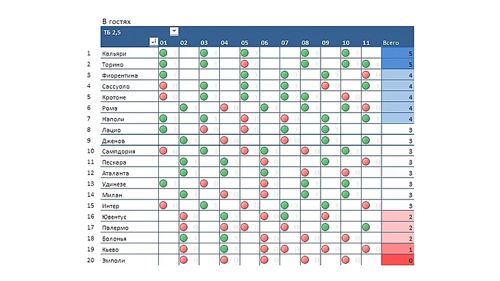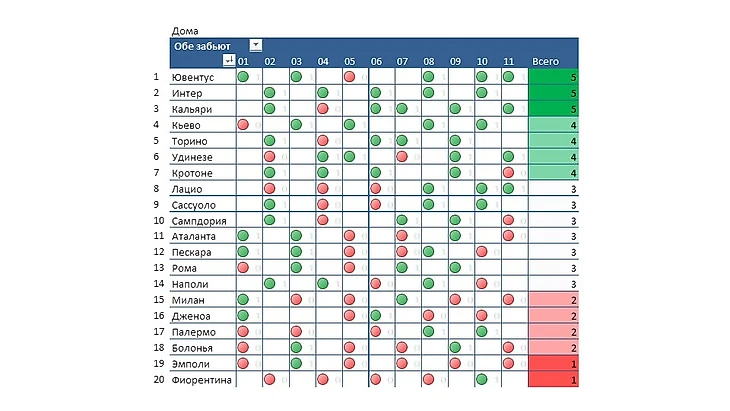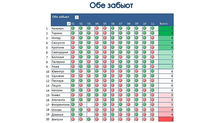 Оцифровка №30. Статистика команд Серии А перед 12 туром