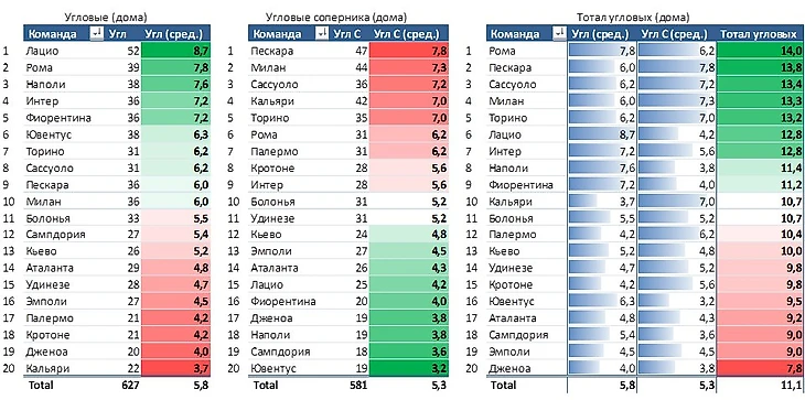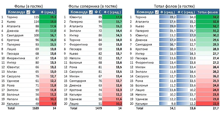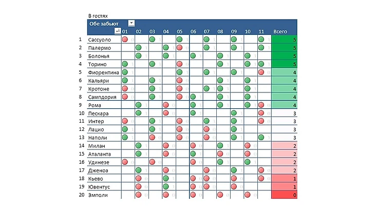 В первую очередь мы всегда говорим о голах. Рома - безоговорочный лидер по этому показателю. В гостевых матчах больше всего забивают Фиорентина и Лацио.