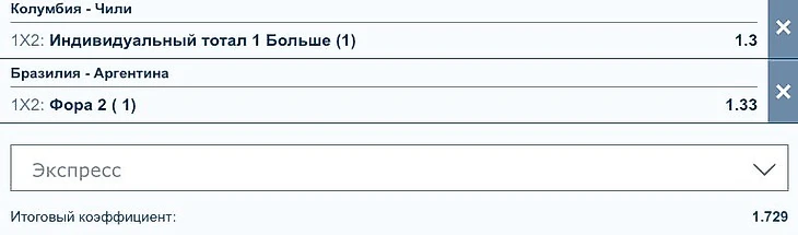 Но первая часть "двойника" - индивидуальный тотал Колумбии больше 1 за 1.35 по линии 1хBet.