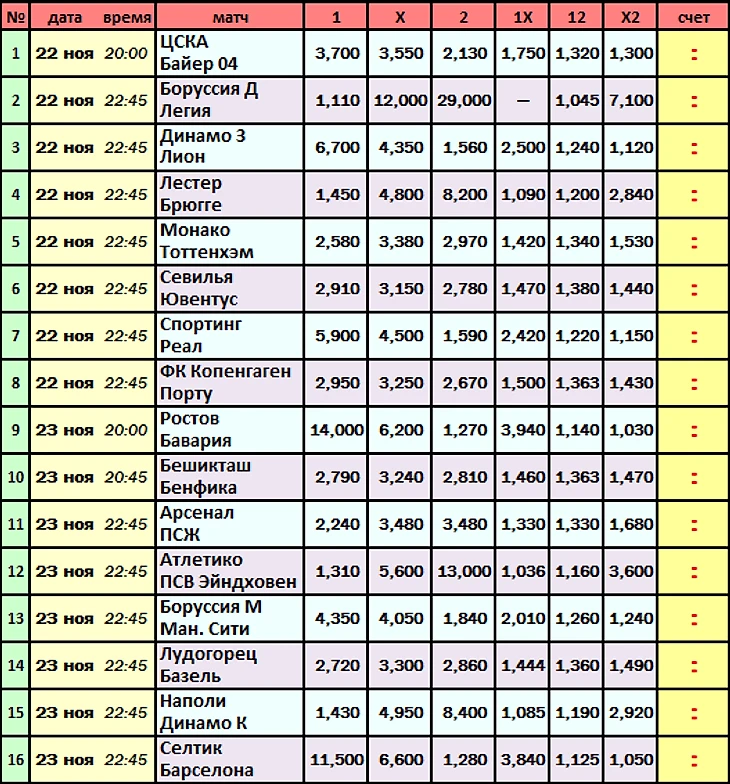 Еврокубковые турниры на неделе играем в 2 отдельных тура. Сегодня начинается прием прогнозов на матчи Лиги Чемпионов. В среду с утра выйдет пост с линией на матчи Лиги Европы.