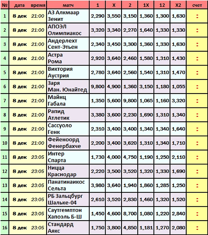 25 тур. 10-11 декабря. Матчи европейских чемпионатов