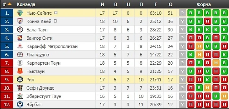 Турнирная таблица: