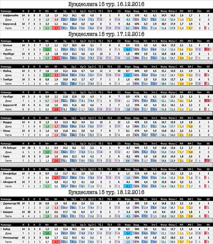 Уд - среднее количество ударов команды, Уд С - среднее количество ударов соперника, Уд Ст -среднее количество ударов в створ команды,Уд Ст С-среднее количество ударов в створ соперника ;