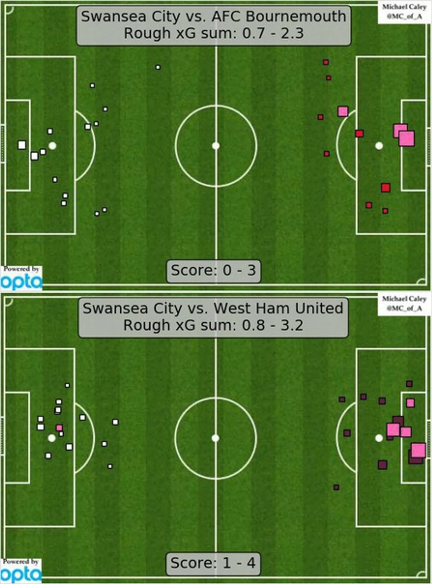 Кристалл Пэлас - Суонси. Команды, переживающие не лучшие времена. У обоих были уволены главные тренеры. И если "КП" подает хоть какие-то признаки жизни (вел игру в первом тайме с "Уотфордом" и если не промах Бентеке с пенальти, то быть бы победе, а также иногда неплохо огрызался с "Арсеналом"), то "лебеди" же в матчах с командами далеко не с топовыми оборонами, не смогли никак себя проявить (см. ниже). Если смотреть на показатели xG, то факт о том, что у "Суонси", наряду с "Халом" самые худшие обороны лиги, делает хозяев действительно фаворитами в матче, хоть и по ощущениям не таким очевидным как "рисуют" букмекеры. В состав берем линию атаки во главе с Бентеке ($11,6 - теневой претендент на капитанство), и оборону, в надежде, на результативное действие Уорда ($7,0) или Данна ($7.8).