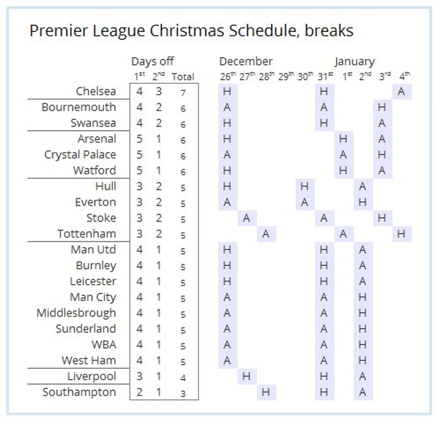 Расписание рождественских матчей