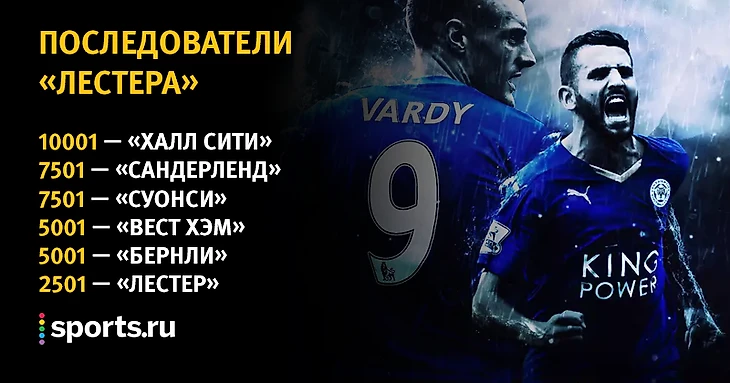 Да. Ровно в два раза. #прямосейчас титул «Лестера» в текущем сезоне увеличит банк волшебника всего в 2,5 тысячи раз. За эталонный 5001 предлагают «Вест Хэм».