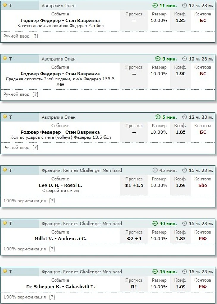 1. Двойные ошибки Федерер 2.5 больше +++++ Результат 3 + 8.5%