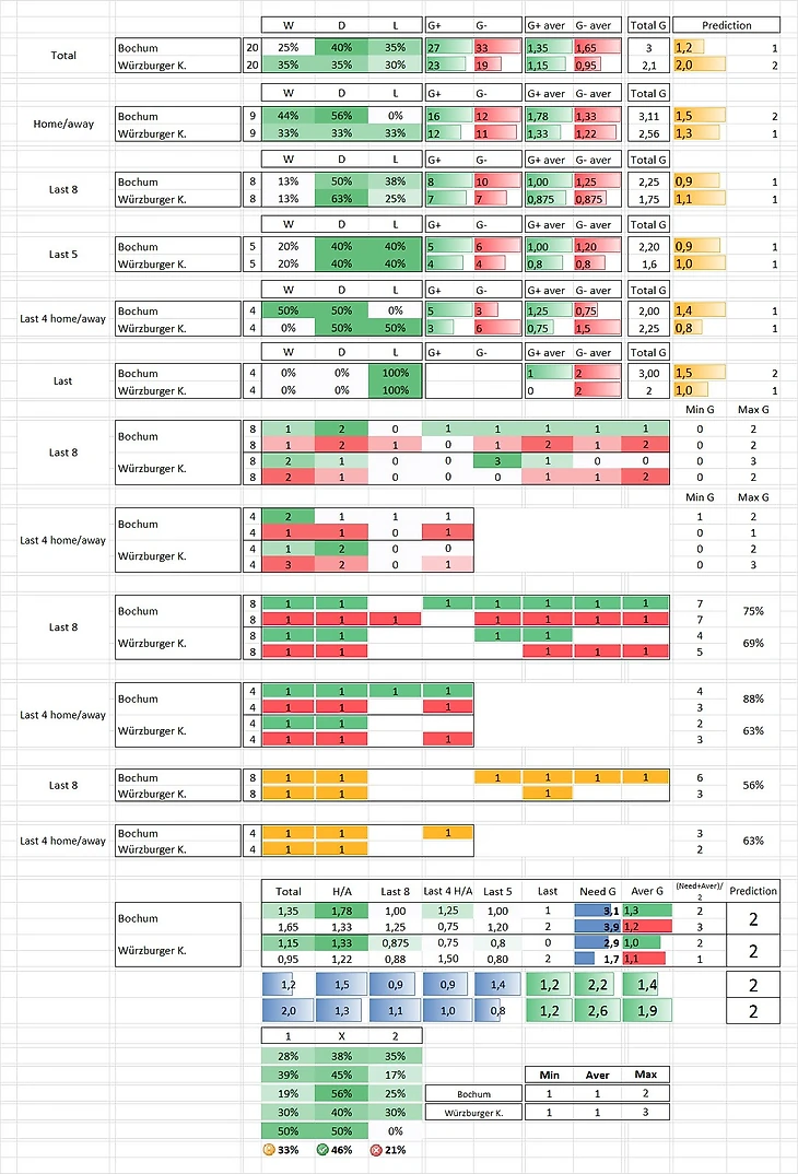 Получается счёт 2:2. Не знаю, насколько это близко к правде, но точно видно, что Бохум забивает и пропускает стабильно. При этом у него накопилось 3,9 отклонения по пропущенным голам, а соперник идёт по сезону близго к своей средней в 1 гол.