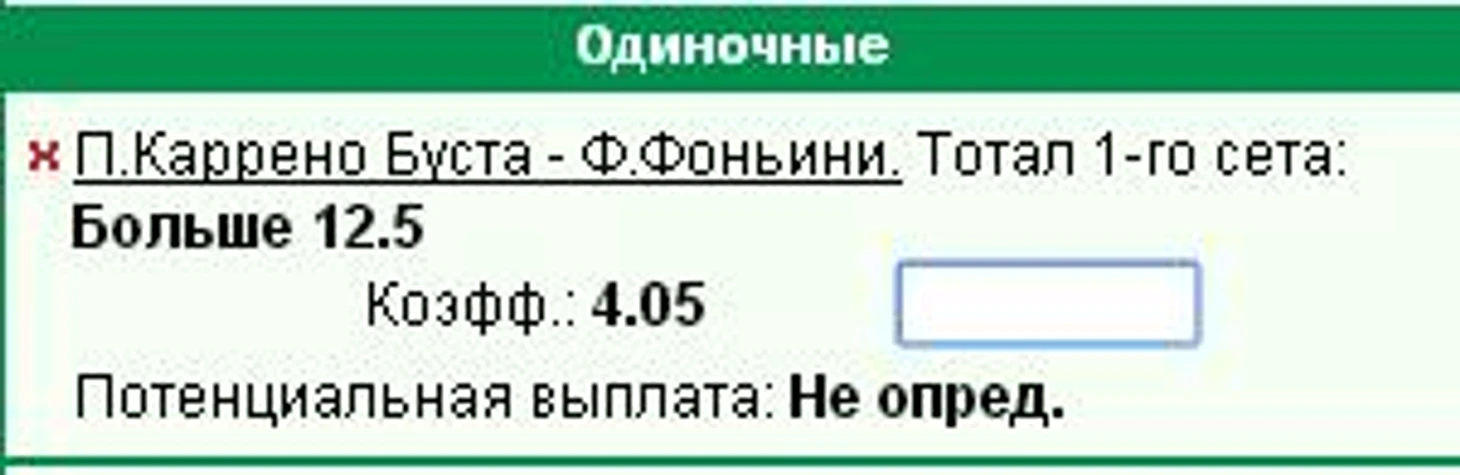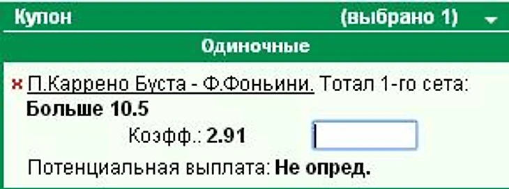А вот это может быть завершающий аккорд моего выступления в "Лиге капперов. Второй дивизион", ведь еще раз повторюсь, если теннисисты не разыграют 13-й гейм в 1-м сете своего матча то я прекращу свои выступления в данном интереснейшем турнире.