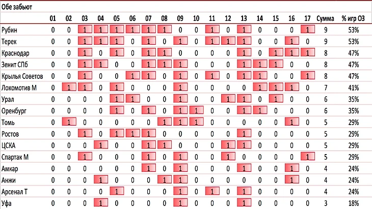 РФПЛ - занимает ведущие позиции среди европейских чемпионатов по ставкам обе забьют - нет и тотал меньше 2,5.