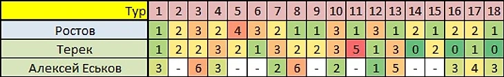 Заглянем в РФПЛ на пару минут. Снова у нас команды-соседи по турнирной таблице с равенством очков. Ростов - после матча с Манчестер Юнайтед. Обе команды в случае победы могут прыгнуть на несколько строчек вверх, к зоне еврокубков. Отметим, что Терек играет в гостях.