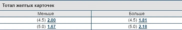 По котировкам Марафона просматривается "верх" для 4.5 жёлтых карточек. По расчётам - фактически 50 на 50. Но поскольку коэффициент конторы кажется завышенным, давайте всё равно сыграем его со ставкой в 1000 рублей. К тому же коэффициент на "низ" у рефери матча - 1.67. Аналогичный предыдущим ТЖК<4.5 за 2.17 в этой встрече.