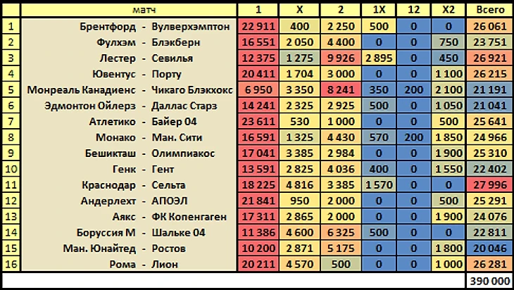 На данный момент завершились 16 матчей: