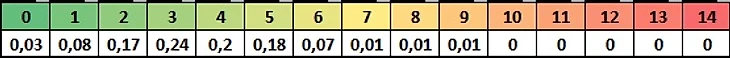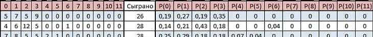 Собственно это и есть статистические или, как я их называю в блоге, "расчётные" вероятности получения того или иного количества жёлтых карточек в любом предстоящем матче между любыми двуми командами. Мы почти у цели.