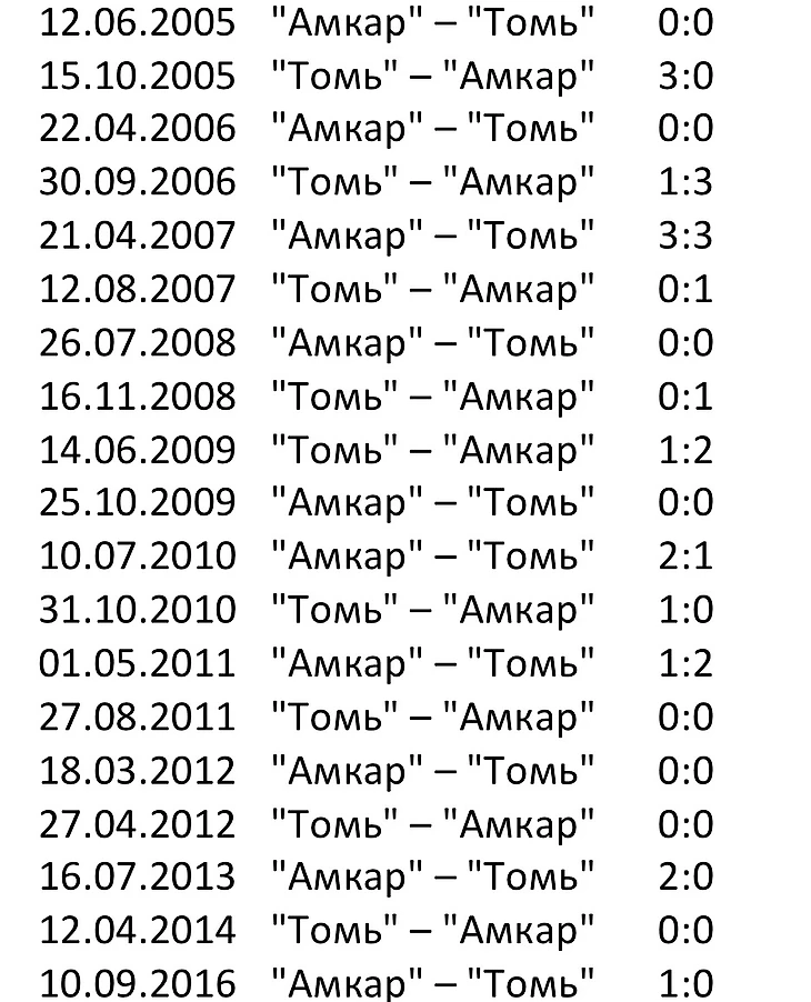 Из очных противостояний вспоминаю матч 2003 года, когда Томь весь матч доминировала и упускала момент за моментом, но Амкар успешно реализовал одну контратаку) Митин тогда забил - 0:1. Пермяки как раз тогда вышли в ПЛ и забрали обратно Шутова (крутейший был игрок!)