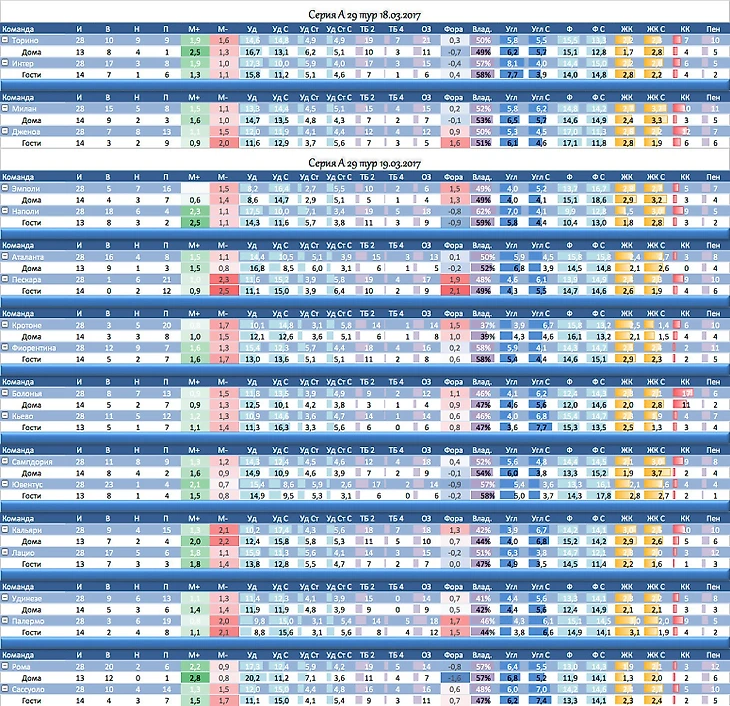 Ниже приведены таблицы H2H, в которых рассмотрены предстоящие матчи на выходные по АПЛ и Серией А(расшифровки столбцов под таблицей).