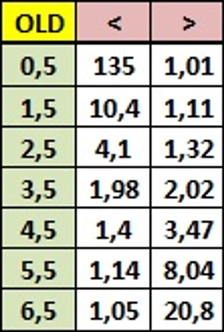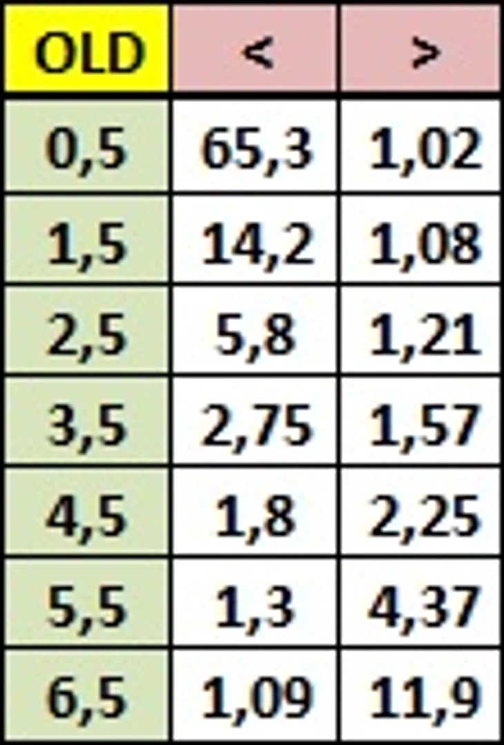 Опираясь на голые цифры, кажется совершенно очевидным, что использовать статистику нужно отдельно по домашним и гостевым матчам. Разница в коэффициентах может быть иногда просто огромной, в некоторых случаях - прямо противоположной той, что использовалась в ранней схеме расчёта. Интересно будет взглянуть, как новые расчёты будут сопоставляться с коэффициентами букмекера.
