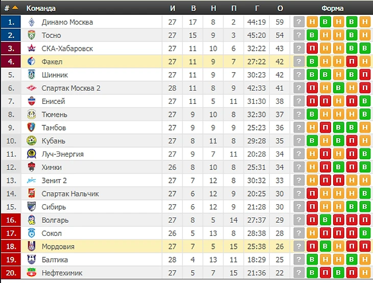 Турнирная таблица: