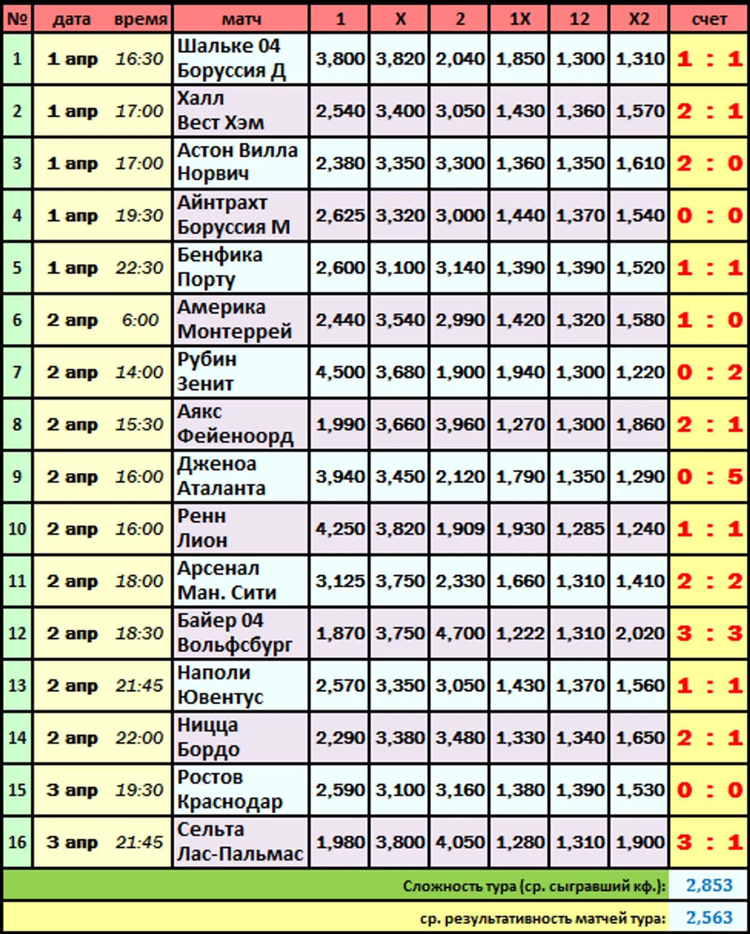 16 тур. 04-05 апреля. Матчи европейских чемпионатов. Пост с приемом прогнозов - 03.04.2017г.