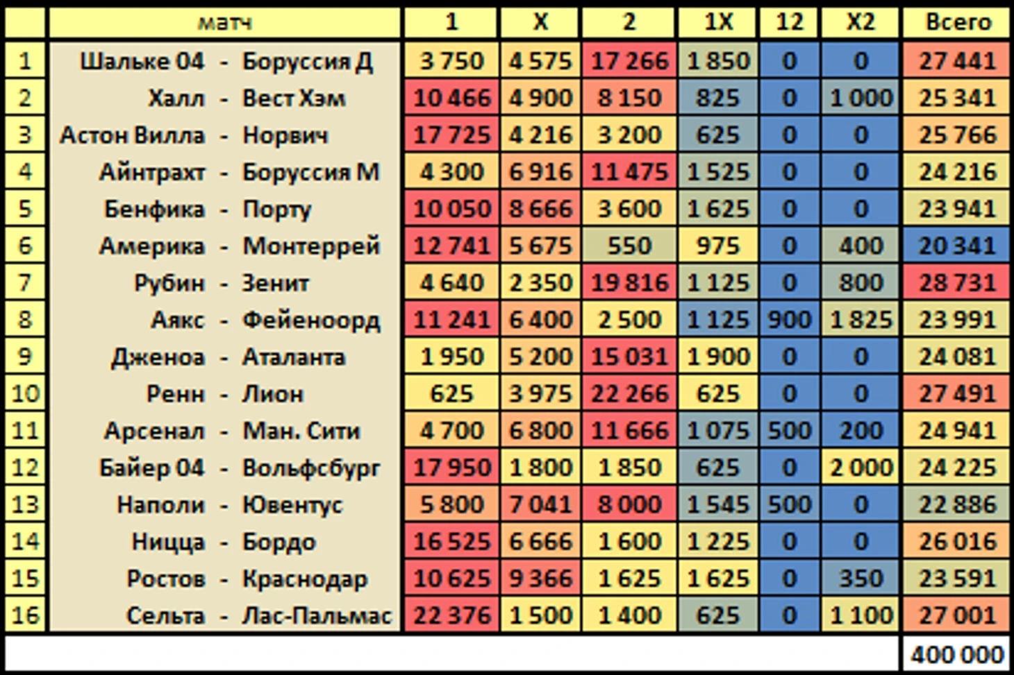 Не забываем, что в вариантах прогноза с ничьей необходимо использовать X - "ИКС"!!! а не русскую букву Х - "Ха"!