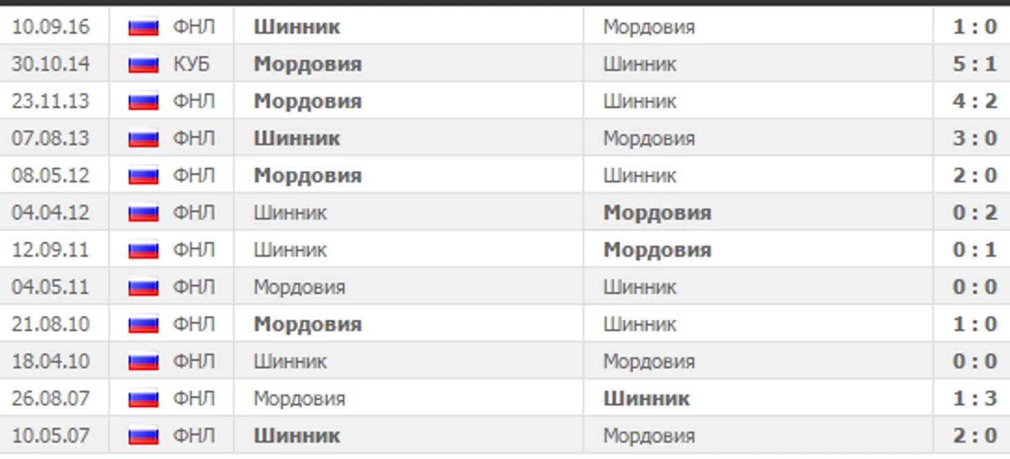 В первом дивизионе команды провели между собой 13 матчей, небольшой перевес у саранского клуба: по победам 6:5, по забитым мячам 15:13. «Шинник» неудачно играет в Саранске. В 6 проведённых матчах команда выиграла всего 1 раз, и 1 раз сыграла вничью.