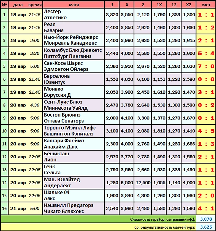 21 тур. 22-23 апреля. Матчи европейских чемпионатов. Пост с приемом прогнозов - 21.04.2017г.