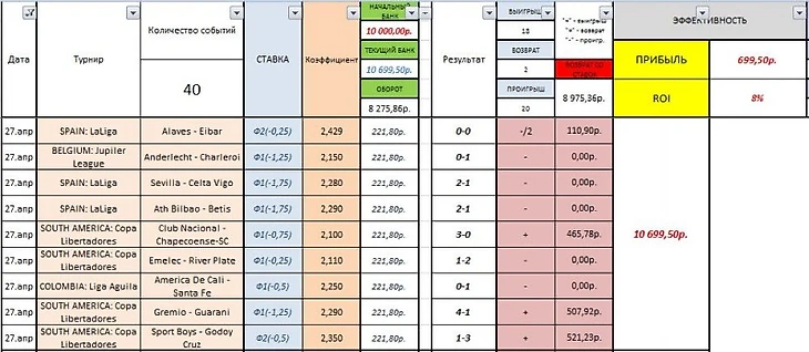 - убыток за день -390,37 рублей. Общая прибыль за Апрель +699,5 рублей.