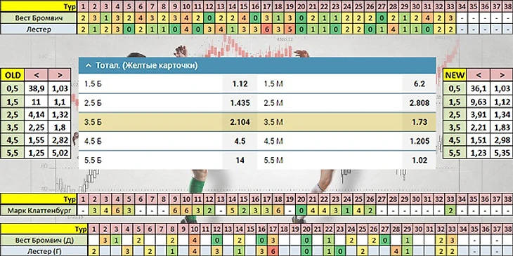 Обходим стороной ставку на ТЖК>3,5 из-за неподходящей статистики Марка Клаттенбурга и сосредотачиваем усилия на ТЖК>2,5 за 1,435. Коэффициент конечно куда менее заманчивый, но спокойный сон важнее. Расчётный коэффициент Клаттенбурга - 1,4. По 4000 рублей ставим на этот исход.