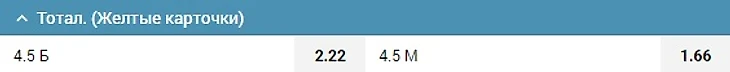 Котировки букмекеров противоречат статистическим данным и заслуживают того, чтобы поменять их местами. Воспользуемся этим и сыграем ТЖК>3,5 за 2,21. Расчётный коэффициент Тобиаса Штилера предельно близок к расчётным кожффициентам команд и составляет 1,77. По 2000 рублей на это событие - достойный вариант.