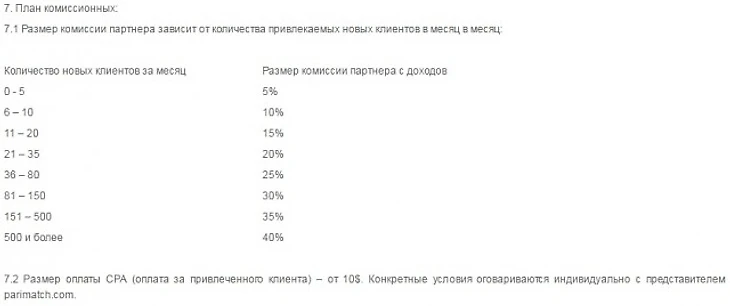 Мы видим, что автор блога НЕ получает прибыли ни от перехода по ссылкам, ни от регистраций новых клиентов, ни даже от оборота средств по счёту этих клиентов. Только процент от чистой прибыли конторы. Говоря человеческим языком, читатель должен перейти по ссылке, зарегистрироваться, стать клиентом конторы, внести депозит и проиграть. Чем больше, тем лучше. Извращённая логика, скажете вы? Возможно, но мы вернёмся к этому позже. Сначала посмотрим, что предлагает своим партнёрам Пари-матч.