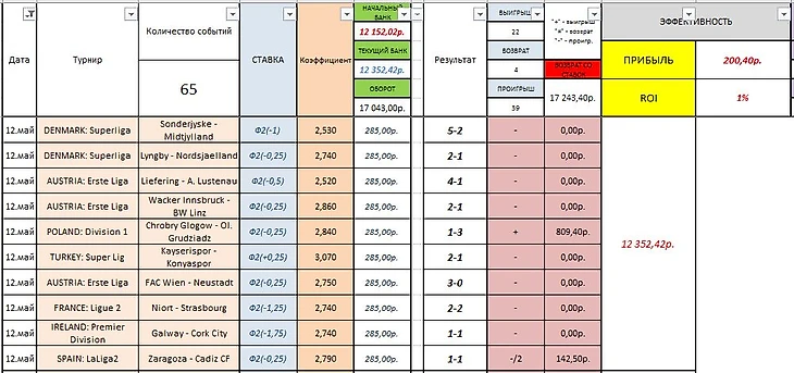 Сразу же должен сказать, что по моим правилам ставок - никаких отыгрышей. А значит вчерашний день - это просто череда событий, которые слегка скорректировали слишком уж хорошую картину в Мае. Сверхприбылей в ставках я не жду. Я жду планомерного роста банкролла, с целью дойти до первой суммы в 100 000 рублей. Это тот показатель банка, при котором уже можно хотя бы немного позволить себе выводить прибыль за месяц. Ну а пока я иду к этой цифре, банк выводиться не будет.