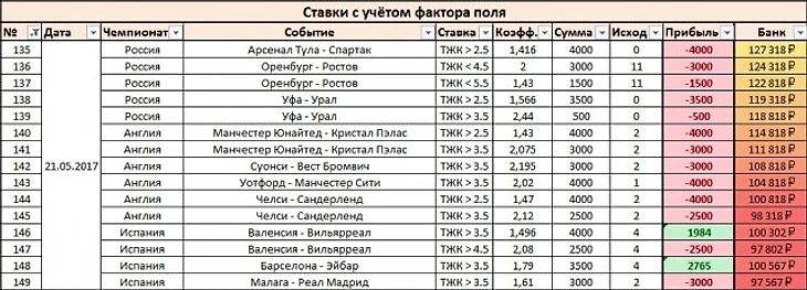 Что произошло и почему так получилось?! Для наглядности проанализирую ставки, например, по стратегии, учитывающей фактор поля: