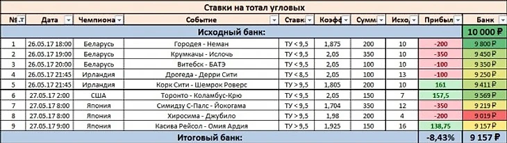 Вчера вечером забыл внести в рассылку на Betonsuccess ночные и утренние матчи. Удалил рассылку. На кой чёрт она нужна для необкатанной стратегии, верно? Вот когда и если стратегия ставок на угловые будет признана дееспособной, тогда и открою рассылку обратно. Пока предпосылок к этому, скажем прямо, немного)