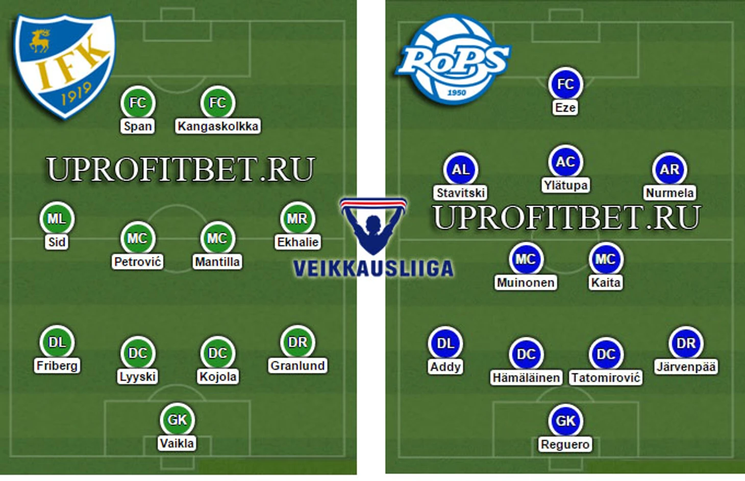 Мариехамн (4-4-2): Vaikla (9/0) — Friberg (9/0), Lyyski (8/0), Kojola (9/2), Granlund (3/0) — Sid (5/0), Petrović (8/0), Mantilla (9/0), Ekhalie (5/0) — Span (9/2), Kangaskolkka (8/6)