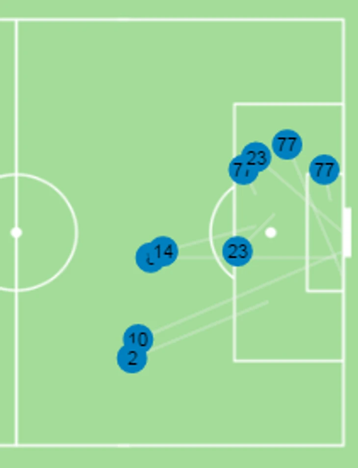 Схема нанесения ударов Мариехамна по воротам Сик: