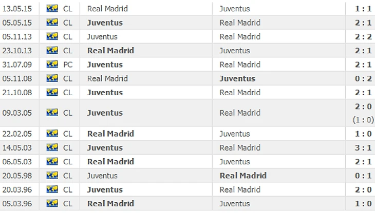 • Туринцы проиграли четыре раза и «лидируют» по числу поражений в решающем матче. Единственную победу в финале в эру Лиги чемпионов они отпраздновали в 1996 году, когда по пенальти одолели «Аякс». «Реал» выиграл все свои пять финалов Лиги чемпионов.
