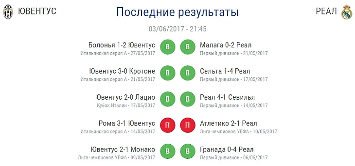 • «Реал» и «Ювентус» играли в финалах совсем недавно. Мадридцы участвуют в решающем матче в третий раз за четыре года и могут стать первым клубом, который выиграет Лигу чемпионов дважды подряд. В 2014 и 2016 годах «королевский клуб» обыграл в финалах своих соседей из «Атлетико». «Ювентус» же в 2015-м уступил в решающей встрече «Барселоне».
