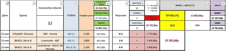 - проходимость ставок в Июне: +15=4-13 (59,4%, ROI: 34%)