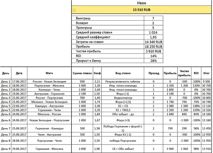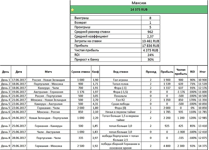 По итогам восьмого игрового дня Кубка Конфедерации 2017 положение в Лиге Подставок следующее: Максим +4 375 руб, Иван +3 910 руб., Imprisoner -6 035 руб.