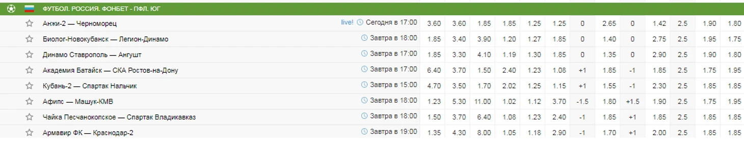 ФУТБОЛ. РОССИЯ. ФОНБЕТ — ПФЛ. ЮГ