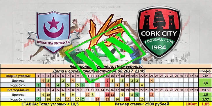 Прогноз Жёлтого слона на тотал угловых в матче Дрогеда - Корк Сити