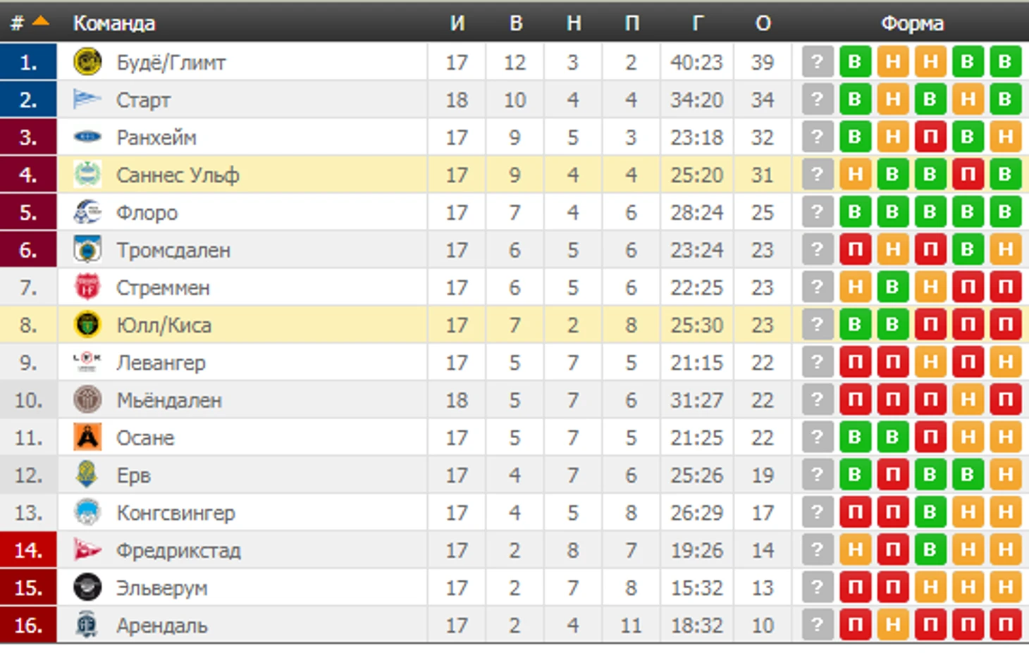 Футбол. Чемпионат Норвегии. 1-й дивизион.