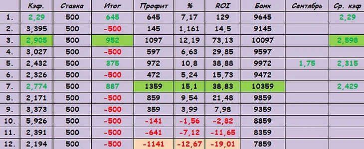 Приветствую, Дорогие Друзья!!!Результаты моей ставочной деятельности в сентябре оставляют желать лушего. Вот уже 5 ставок подряд оказались неудачными, и это незамедлительно сказалось на банке, который уменьшился уже на -1141р.Сентябрь: 12ст, +4 =0 -8, -1141р, -12,67%. ROI=-19?01%. Банк=7859р.Средний кэф, зашедших ставок равен=2,429.Со сложившейся ситуацией нужно что-то делать. До конца месяца еще довольно много времени, постараюсь ликвидировать имеющийся минус.Сегодня первой ставкой будет двойник на хоккейные матчи.