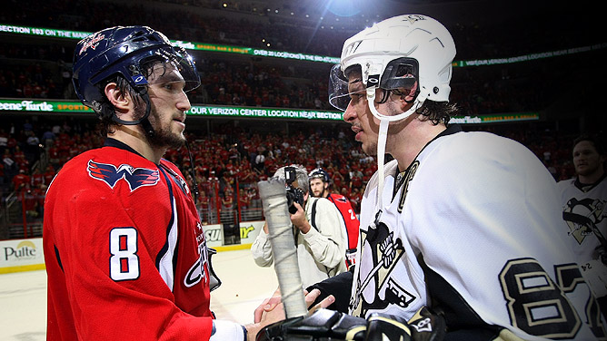 "Это в трикотажных изделий", экс-пингвина Билл Герин рассказал NHL.com о соперничестве между столицами и пингвинов. "Вы уважаете человека, и вы по-плеер, но да, вы идете на войну друг против друга, и вам не нравится команда"