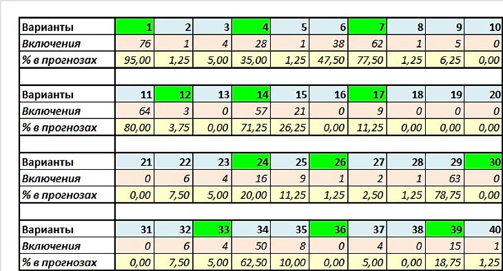 Сыграно вариантов: 12 (1-4-7-12-14-17-24-26-30-33-36-39)